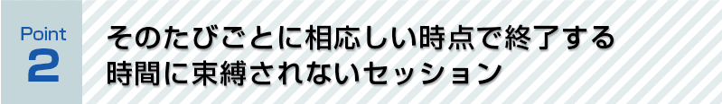 セッションの展開に従って、その都度適切な時間で区切ります。時間を固定しないことで効果的な進展が促されます。